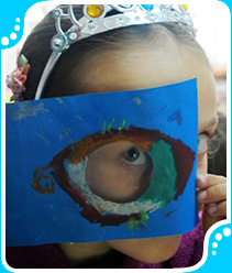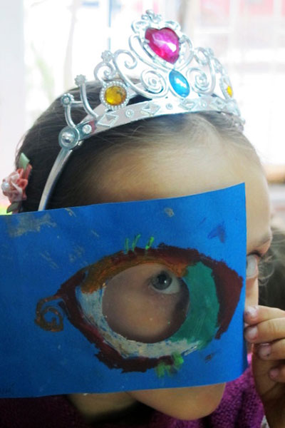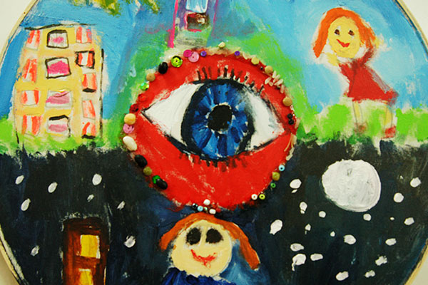 Visualizamos la luz y la sombra tanto del mundo que nos rodea como la de nuestro mundo interior. Aprendimos la técnica de la luz y la sombra que da volumen a los objetos en la pintura. Pintamos un gran ojo para conocer el mecanismo de la visión. Descubrimos que la luz de los ojos son el reflejo del espíritu y pintamos acontecimientos que lo iluminan y que lo ensombrecen.